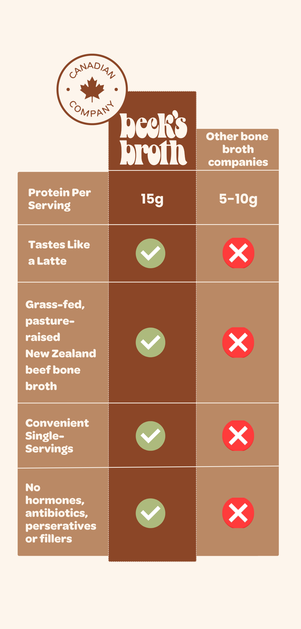 Becks broth is my FAV part of my morning routine. It is SO delicious even with just hot water and it gets so frothy, which is a MUST! So easy to mix into oatmeal/yogurt/add to a smoothie too! And most importantly, I love that it's loaded with nutrients and PROTEIN... So it not only tastes incredible but it's also great for my health! Huge fan, 10/10 recommend.