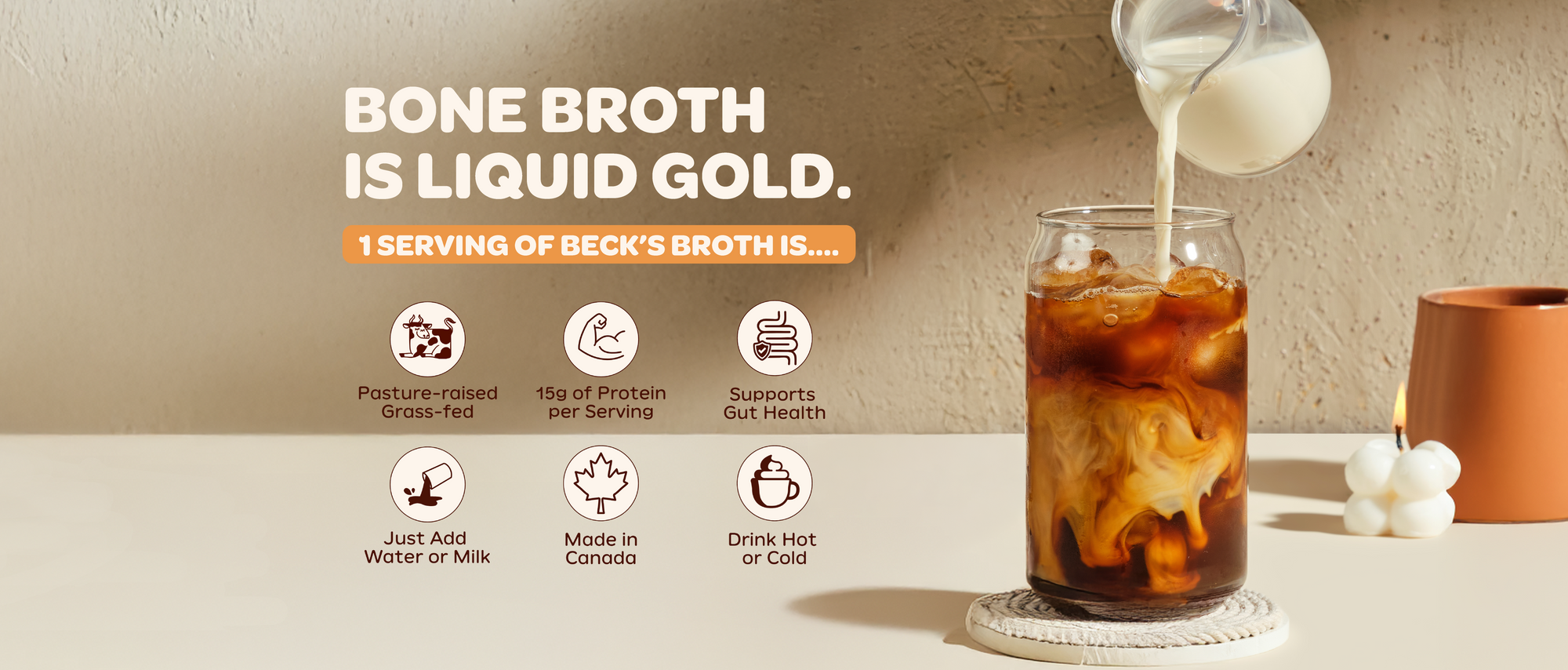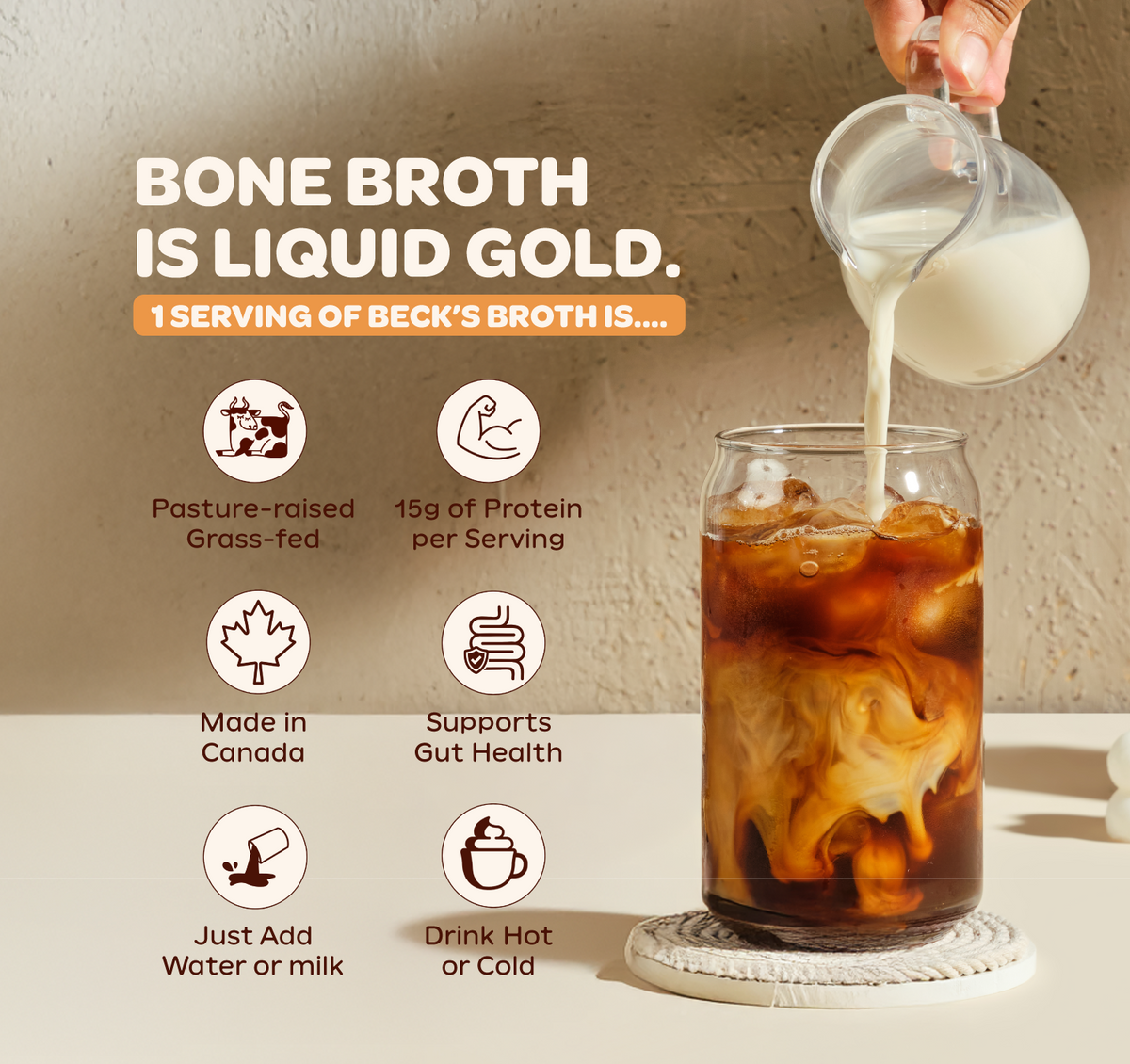 Becks broth is my FAV part of my morning routine. It is SO delicious even with just hot water and it gets so frothy, which is a MUST! So easy to mix into oatmeal/yogurt/add to a smoothie too! And most importantly, I love that it's loaded with nutrients and PROTEIN... So it not only tastes incredible but it's also great for my health! Huge fan, 10/10 recommend.